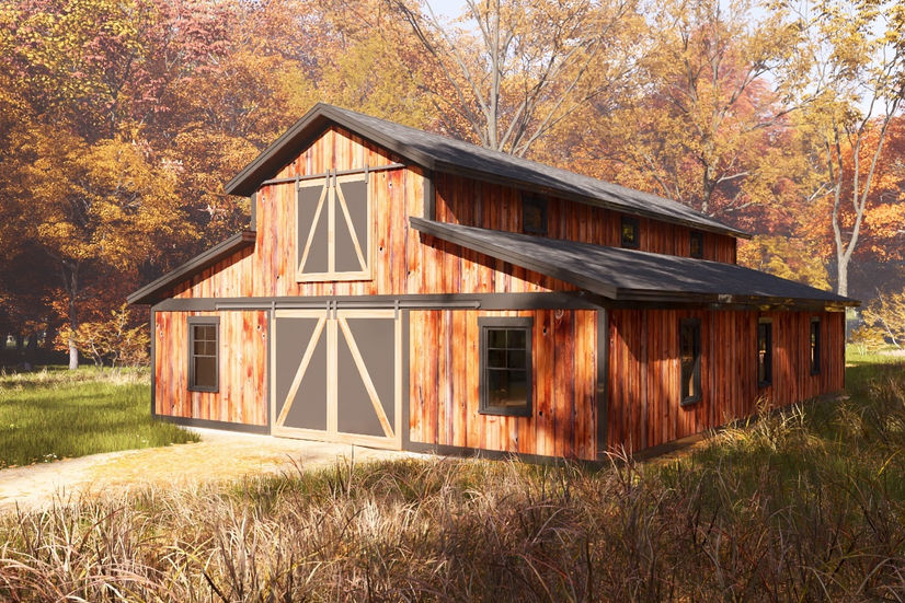 The Kingsbury Barn is a classic monitor style barn with modern touches. Open floorplan allows for flexibility to make into whatever you need it to be. Loft storage above. Can be even modified for use as living space!
